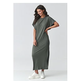 Elegantní maxi oversize šaty jsou ideální kombinací pohodlí a moderního minimalismu. Volný střih poskytuje volnost pohybu a jednoduchý střih skvěle padne na různé typy postav. Je to ideální volba pro ženy, které ocení pohodlí a nadčasový styl. Model má klasický, zakrytý výstřih a krátké, široké rukávy, které zdůrazňují ležérní charakter stylizace. Maxi délka ve spojení s efektním rozparkem po straně dodává lehkost a decentně vystavuje nohu, celkově dodává ženskost. Měkký, příjemný na dotek materiál dělá tyto dámské šaty ideální volbou pro každodenní nošení v práci, na procházky nebo setkání s přáteli. Jedná se o univerzální dlouhé šaty s rozkrokem, které můžete stylovat různými způsoby, buď s teniskami ve sportovním stylu nebo s elegantními doplňky pro sofistikovanější efekt. Díky jednoduchému střihu jsou skvělou základnou pro vytváření módních outfitů po celou sezónu.