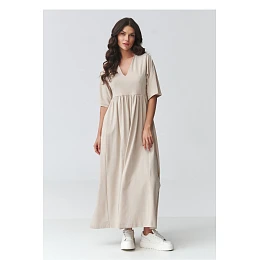 Elegantní maxi šaty jsou ideální kombinací pohodlí a nadčasové elegance. Jejich volný, uvolněný střih krásně padne na postavě, poskytující pohodlí po celý den. Jemné Výstřih zdůrazňuje linii krku a výřez pod prsy dodává lehkosti a ženského charakteru. Dlouhé šaty jsou vyrobeny z příjemného, prodyšného materiálu, který je ideální jak na teplé dny, tak na vrstvené stylizace. Krátké rukávy a štěrbiny po stranách dodávají moderní vzhled a volnost pohybu. Šaty skvěle ladí s doplňky, od sportovních tenisek po elegantní sandály nebo boty. Jedná se o univerzální dámské šaty, které se hodí na mnoho příležitostí, do práce, na procházku, setkání s přáteli nebo dovolenou.