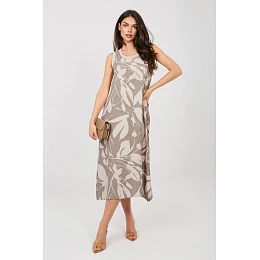 Lehké a stylové letní šaty jsou skvělým návrhem na teplé dny. Skvěle se hodí do každodenních stylizací na procházky, setkání s přáteli nebo dovolenou. Jejich volný střih zaručuje pohodlí a módní vzhled. Model je vyroben z kombinace viskózy a polyamidu, díky čemuž je materiál příjemný k pokožce, prodyšný a dobře padne na postavě. Šaty mají kulatý výstřih a jsou bez rukávů, což zaručuje pohodlí i v horkých dnech. Celkový vzhled dotváří efektní rostlinný potisk, který šatům dodává letní, svěží charakter. Délka midi dodává modelu eleganci, zároveň však zůstává velmi pohodlný a univerzální. Jsou to ideální šaty na každodenní nošení, které vám umožní vytvořit lehkou, ženskou stylizaci na léto.