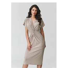 Elegantní středně dlouhé šaty jsou skvělou volbou pro ženy, které ocení klasickou eleganci a moderní design. Model vyniká jedinečným střihem, který krásně zdůrazňuje postavu a zaručuje pohodlí při nošení. Ženský výstřih ve tvaru písmene V decentně zdůrazňuje horní část postavy a opticky prodlužuje krk. Centrálním prvkem designu je efektní sbíhání v pasu, které tvaruje postavu a dodává šatům elegantní charakter. Jemně padající materiál vytváří přirozené záhyby, díky nimž střih středně dlouhých šatů krásně zdůrazňuje pas a boky, zároveň zajišťuje volnost pohybů. Volnější rukávy dodávají celku lehkost a dělají šaty skvělými jak na každý den, tak i na formální události. Délka po půli lýtek dodává stylizaci eleganci a dělá ze středně dlouhých šatů univerzální kousek ženského šatníku.