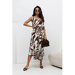 Šaty s rozšířeným střihem jsou lehkým a efektním návrhem ideálním pro každodenní outfit. Jejich volný střih se krásně skládá na postavě, poskytující pohodlí a prodyšnost i v teplejších dnech. Model s maxi délkou přitahuje pozornost módním zvířecím motivem, který celku dodává výrazný a stylový charakter. Výstřih do V jemně zdůrazňuje linii krku a dodává šatům ženskou lehkost. Vyrobena z příjemné viskózy, šaty jsou prodyšné, měkké a pohodlné na nošení. Bez rukávů a bez zapínání je tento model pohodlný a praktický v každodenním nošení. Jedná se o skvělou volbu na letní dny, kombinující volnost, pohodlí a moderní, výrazný styl.