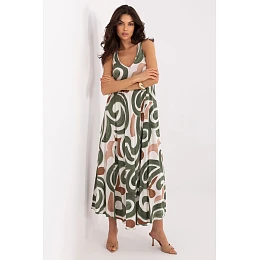 Šaty s rozšířeným střihem jsou lehkým a efektním návrhem ideálním pro každodenní stylizace. Jejich volný střih se krásně přizpůsobuje postavě, poskytující pohodlí a prodyšnost i v teplejších dnech. Model s maxi délkou přitahuje pozornost moderním potiskem, který dodává celku výrazný a stylový charakter. Výstřih ve tvaru srdce jemně zdůrazňuje linii krku a dodává šatům ženskou lehkost. Vyrobené z příjemné viskózy jsou šaty prodyšné, měkké a pohodlné na nošení. Bez rukávů a bez zapínání je model pohodlný a praktický na každodenní nošení. Je to skvělá volba na letní dny, spojující volnost, pohodlí a moderní, výrazný styl.