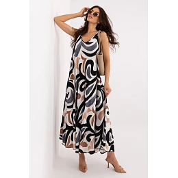 Šaty s rozšířeným střihem jsou lehkou a efektní nabídkou ideální pro každodenní styling. Jejich volný střih krásně padne na postavě, poskytující pohodlí a prodyšnost i v teplejších dnech. Model s maxi délkou přitahuje pozornost módním potiskem, který celku dodává výrazný a stylový charakter. Výstřih do V decentně zdůrazňuje linii krku a dodává šatům ženskou lehkost. Vyrobené z příjemné viskózy jsou šaty prodyšné, měkké a pohodlné na nošení. Bez rukávů a bez zapínání je model pohodlný a praktický pro každodenní nošení. Je to skvělá volba na letní dny, kombinující svobodu, pohodlí a módní, výrazný styl.