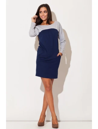 Decentní a dívky šaty, které vám dodá půvab a jemnost. Top s dlouhými rukávy a šedé, od poprsí řádek dolů šaty z bavlny. kartu trim na krku a kapsy dát mu charakter. Módní pohodlně vejde na bocích, trochu volnější kolem pasu.