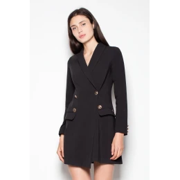 Elegantní žaketové šaty se zapínají na ozdobné knoflíky, které se objevují i na rukávech. Šaty jsou k dispozici v klasických barvách. Lze nosit i jako bundu.