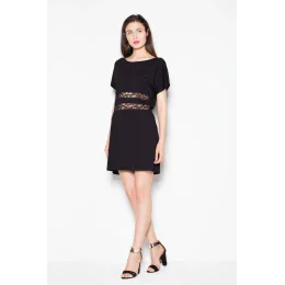 Skromné šaty s průsvitnými pruhy v pase a v pase. Šaty s krátkým rukávem jsou ideální pro každodenní nošení.