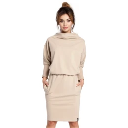 Atraktivní kimonové šaty s žebrovanými rukávy, vysokým komínovým výstřihem a praktickými bočními kapsami. Volnější střih s elastickým pasem.