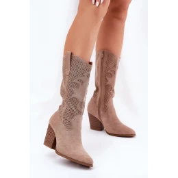 Děrované Kozačky Kovbojské Na Podpatku Béžové S.Barski HY51-606