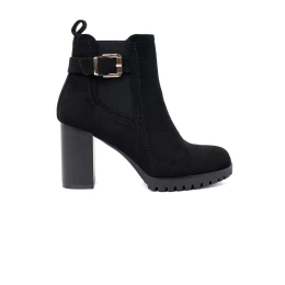 Designové černé dámské kotníčkové boty na širokém podpatku
