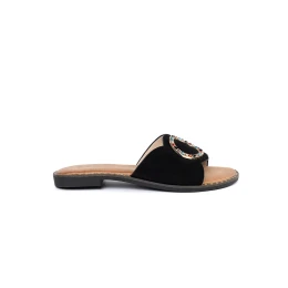 Designové černé nazouváky dámské na plochém podpatku