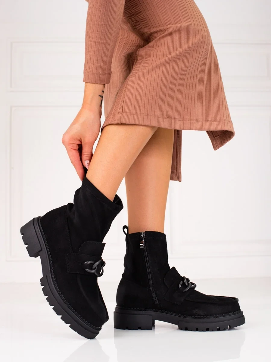 Designové dámské černé kotníčkové boty na plochém podpatku