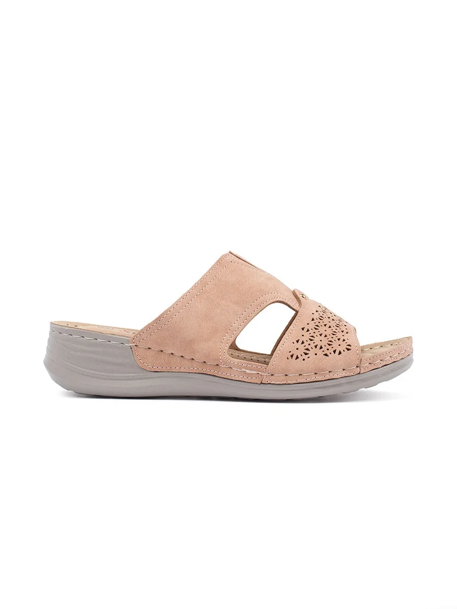 Designové dámské nazouváky Jasnoróżowy na plochém podpatku
