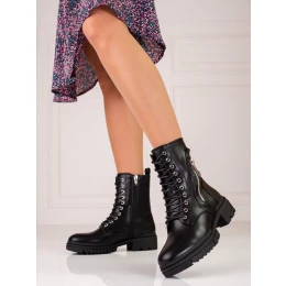 Designové kotníčkové boty dámské černé na plochém podpatku