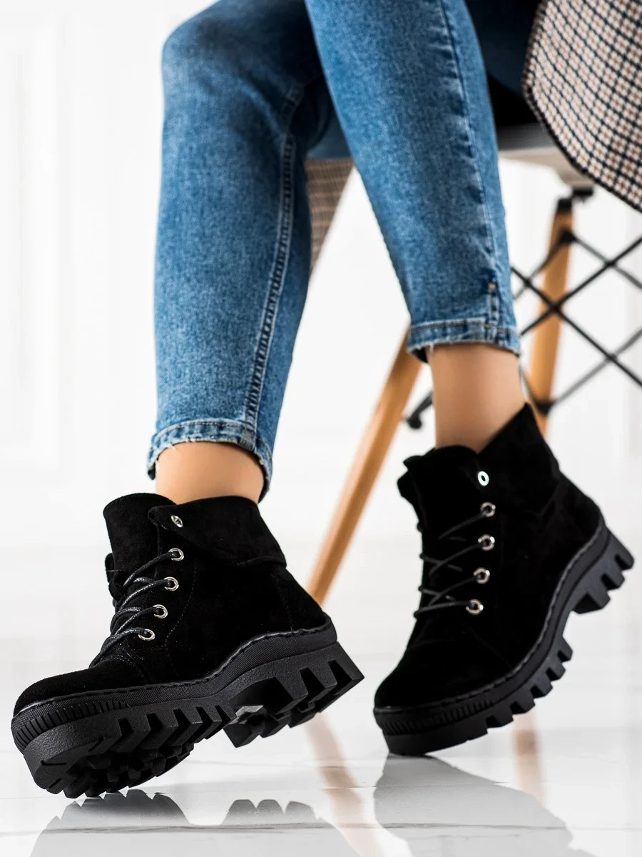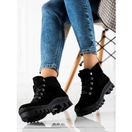 Designové kotníčkové boty dámské černé na plochém podpatku