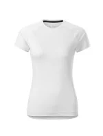 hladký strečový rychleschnoucí materiál ideální pro sport a pohybové aktivity přiléhavý střih tvarovaný bočními díly dekorativně prošité ploché švy úzký lem průkrčníku z vrchového materiálu vnitřní část průkrčníku začištěna kontrastní páskou krátké raglánové rukávy tvarovaný a mírně prodloužený zadní díl etiketa v podobě odnímatelné nálepky vhodné pro sublimační potisk (světlé barvy)