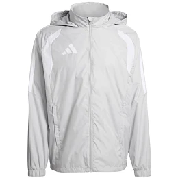 Dětská bunda adidas Tiro 26 League Windbreaker šedá KT2426 Dětská bunda adidas pochází z řady Tiro. Podšívka ze síťoviny. Systém Clima365. Zip po celé délce. Nášivka na ochranu brady. Neodnímatelná kapuce bez možnosti regulace. Dvě boční kapsy na zip. Standardní střih. Žebrované manžety. Technické údaje:- Materiál: 100% polyester (recyklovaný)- Standardní střih- Kapsy na zip- Podšívka ze síťoviny- Neodnímatelná kapuce- Elastické manžety.