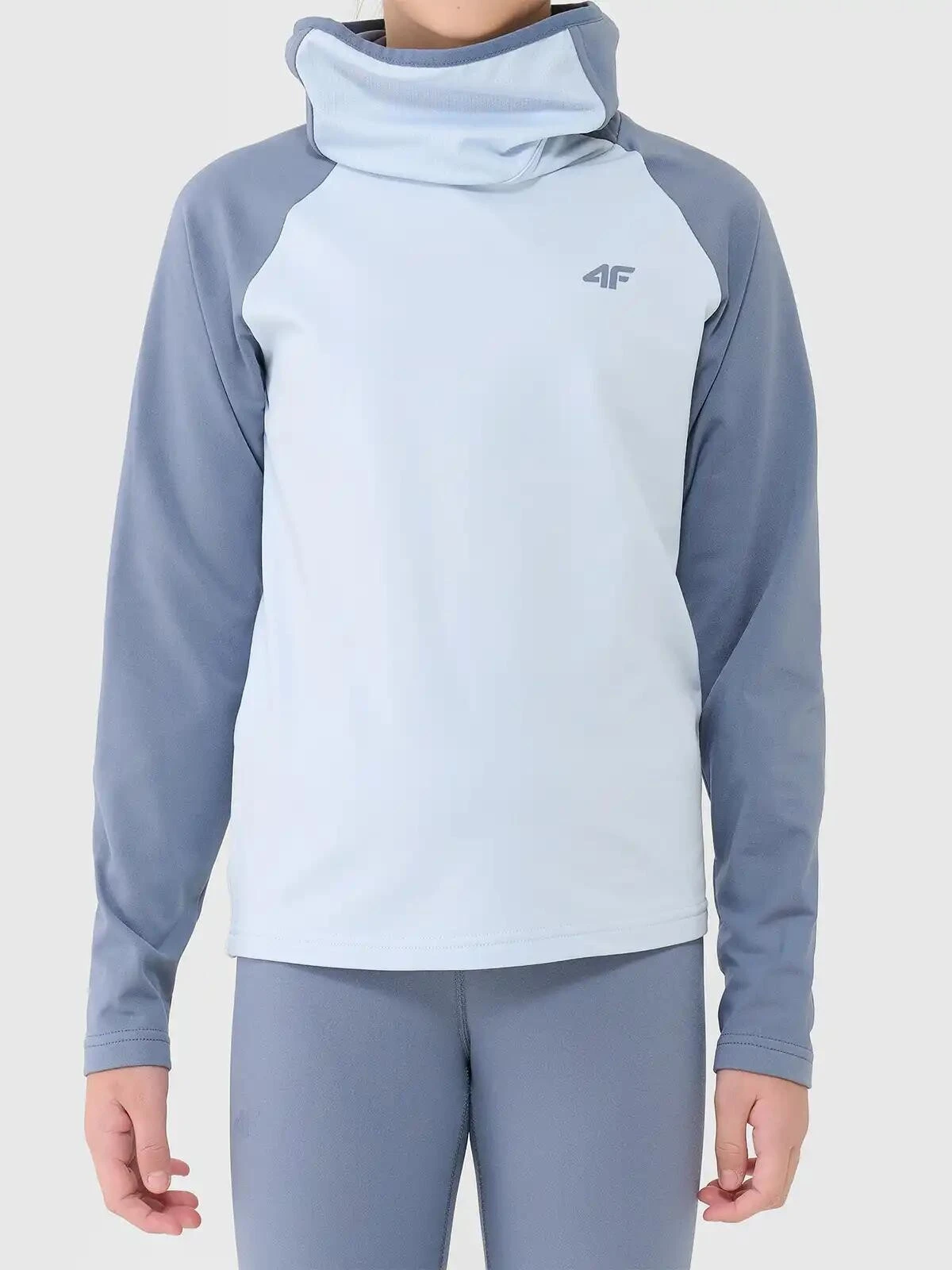 Dívčí funkční mikina 4F. Lehká a příjemná na nošení, vhodná jako střední vrstva i na samostatné nošení.