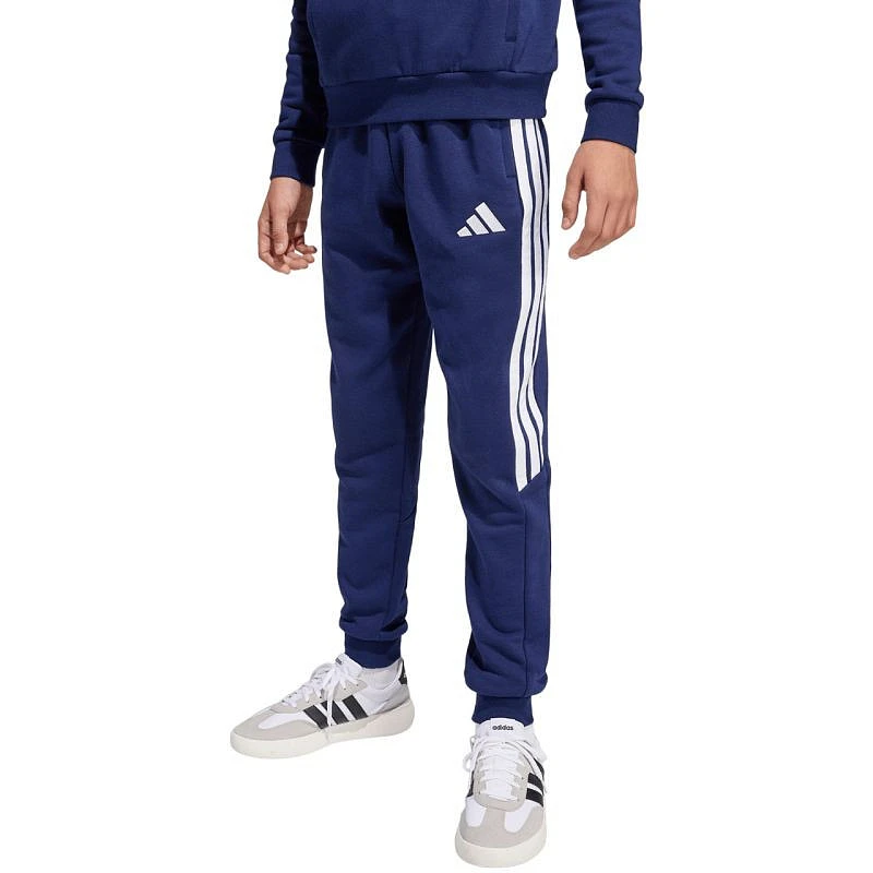 Dětské kalhoty adidas Tiro 26 League Sweat v tmavě modré barvě JY9673 Dětské kalhoty adidas Tiro jsou součástí řady Tiro, ideální pro odpočinek mezi tréninky. Kombinace prodyšné bavlny a odolných polyesterových vláken. Pravidelný střih s žebrovanými vsadkami ve spodní části nohavic. Elastický pas s vnitřní stahovací šňůrkou pro nastavení. Boční kapsy na zip. Materiál: 70 % bavlna, 30 % polyester.