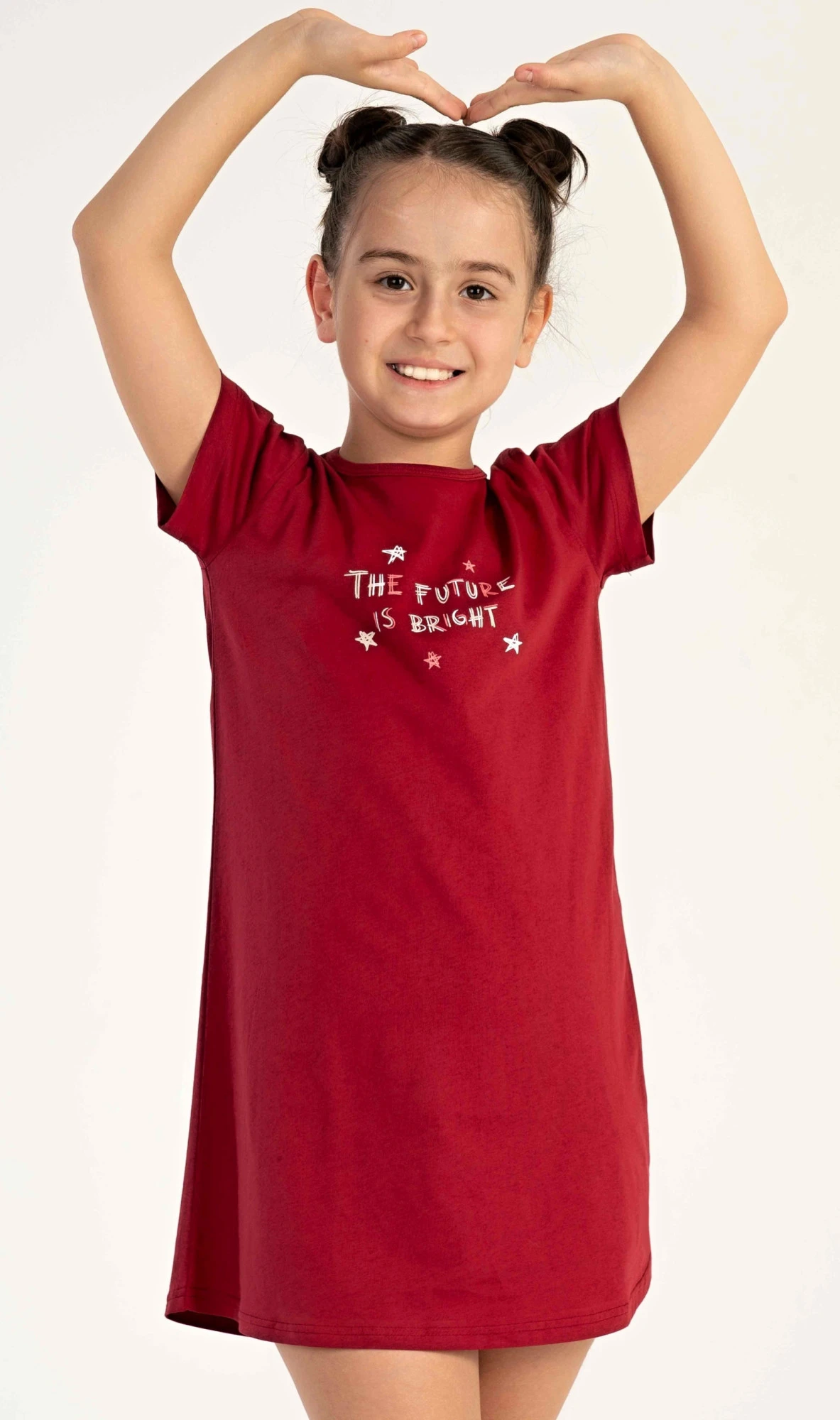 Dětská bavlněná noční košile s krátkým rukávem Hvězdičky. Na jednobarevné košilce s krátkým rukávem je obrázek hvězdiček a nápis 'The future is bright'. Použitý bavlněný materiál je poddajný a příjemný na dotek.
