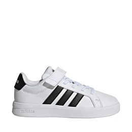 Dětská obuv adidas Grand Court 3.0 bílá HP3531 Dětská obuv adidas kombinuje pohodlí a moderní design. Lehká obuv poskytuje pohodlnou ochranu pro každodenní nošení. Syntetický svršek s textilní podšívkou. Gumová podrážka. Praktické zapínání na suchý zip. Elastické gumičky připomínající šněrování.
