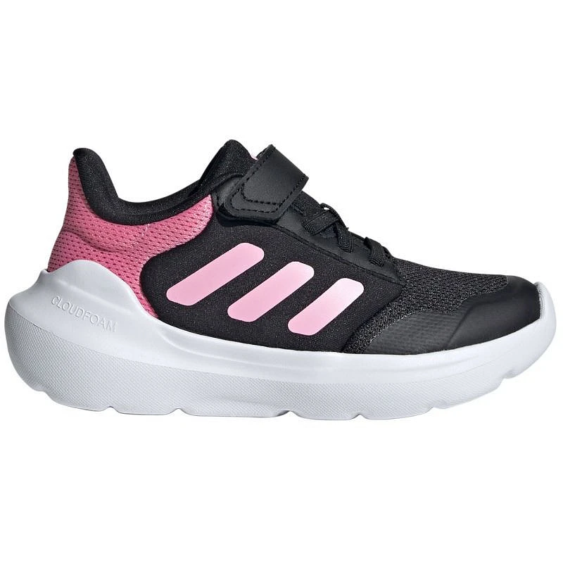 Dětská obuv adidas Tensaur Run 3.0 v černo-růžové barvě IE5988 je perfektní běžecká obuv pro děti s textilním svrškem vyztuženým syntetickými vložkami, šněrovací konstrukcí, lehkou mezipodešví Cloudfoam se zvýšeným profilem a podrážkou z pěny EVA pro zajištění trakce. Část obuvi je vyrobena z recyklovaných materiálů.