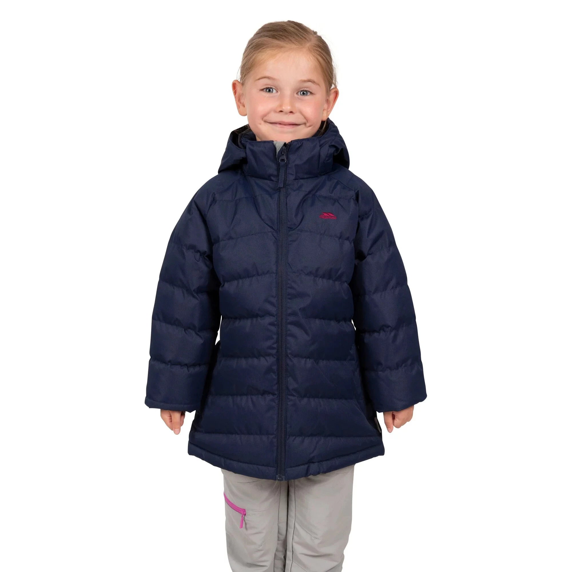 Dětská větruodolná bunda Amira od značky Trespass je lehce voděodolná s ochranou 2000 mm. Kromě toho má prošívaný design s polstrováním a odnímatelnou kapuci, což ji činí ideální pro venkovní dobrodružství.