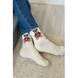 Dětské a juniorské ponožky s medvídkem ve svetru – ecru