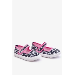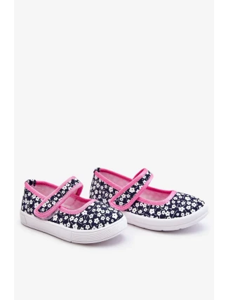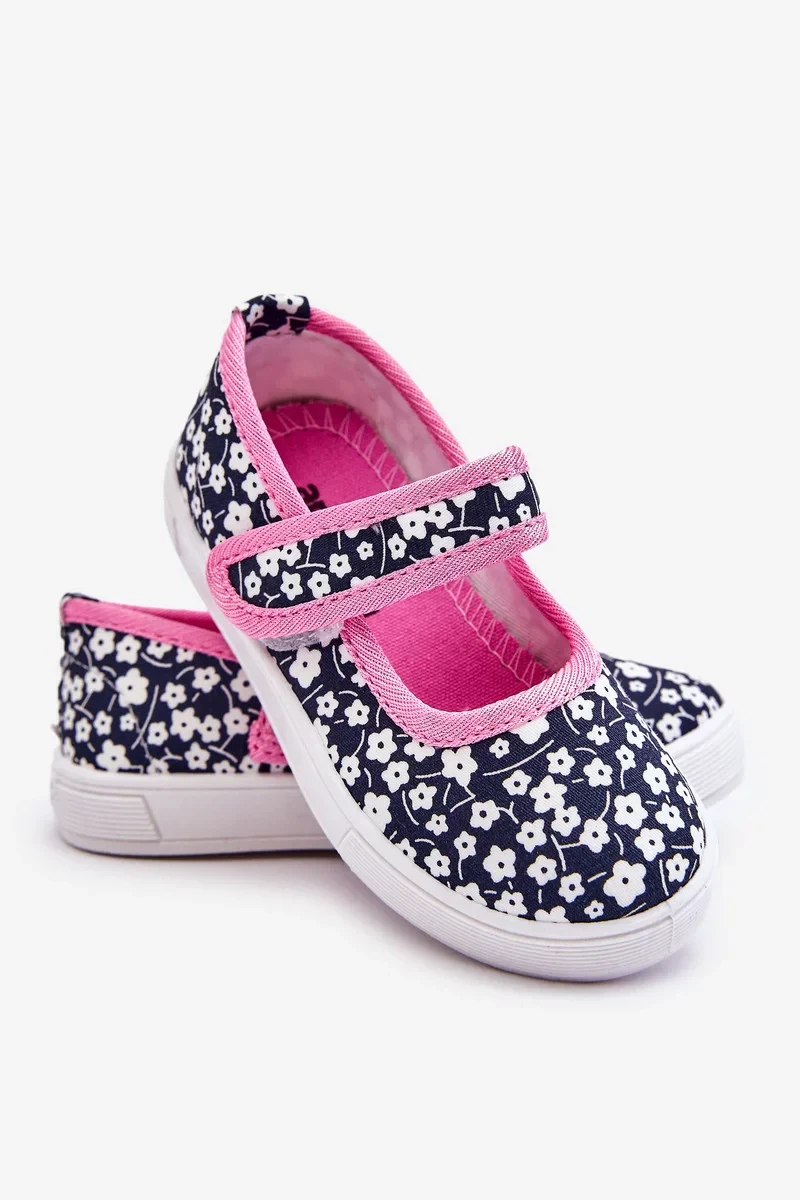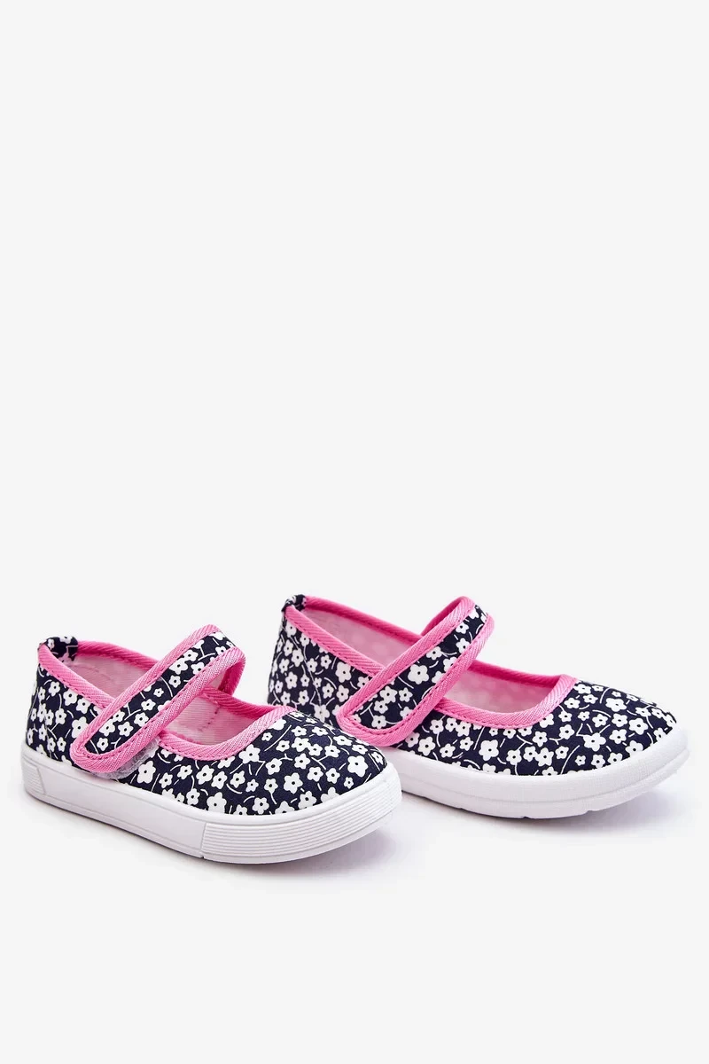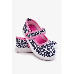 Dětské balerínky na suchý zip v potisku námořnické modré a růžové Selah
