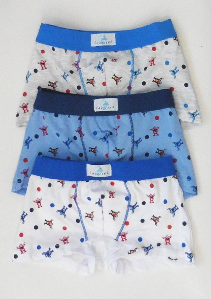 Dětské boxerky Gasolino. Velmi příjemný a pružný materiál chlapeckých boxerek, krásné a jemné barvy doladěné potiskem obrázků. Horní obvod tvoří pružná širší guma potažená látkou pro komfortní nošení. Obvod nohaviček je volně přeložen, a proto se nezařezává. Do vnitřního dílu je zapracován bavlněný klínek. Barva Vám bude vybrána náhodně nebo můžete barvu poznačit do poznámky. Cena je za jeden kus boxerek.