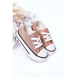 Dětské Brokátové Tenisky Růžové Zlato Bling-Bling