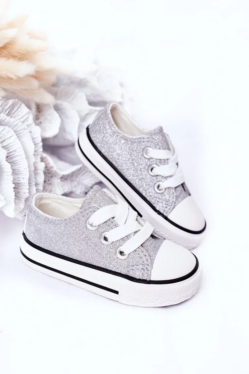 Dětské Brokátové Tenisky Stříbrné Bling-Bling