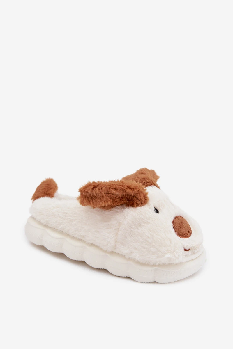Dětské chlupaté bačkory – hnědé se psy Farnise