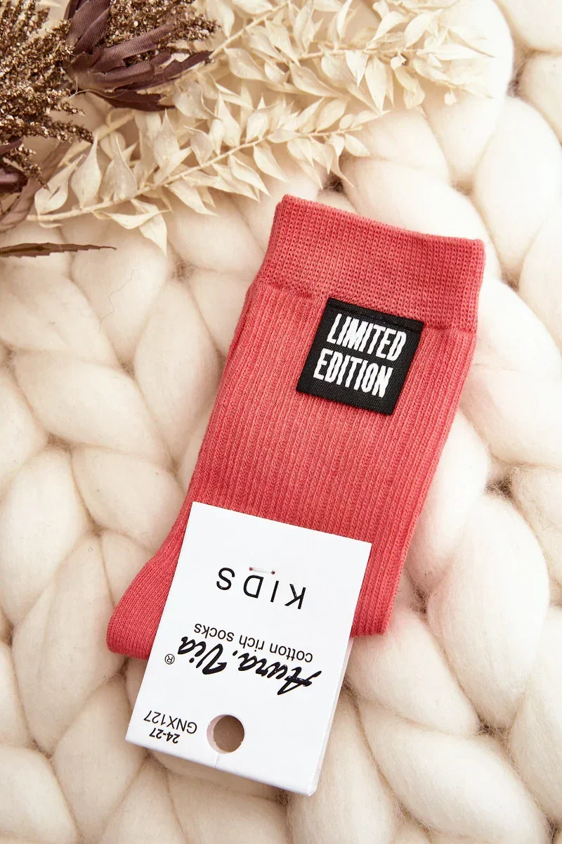 Hladké dětské ponožky z bavlny. Mají módní nášivku s nápisem. Ideální pro chladné zimní dny!