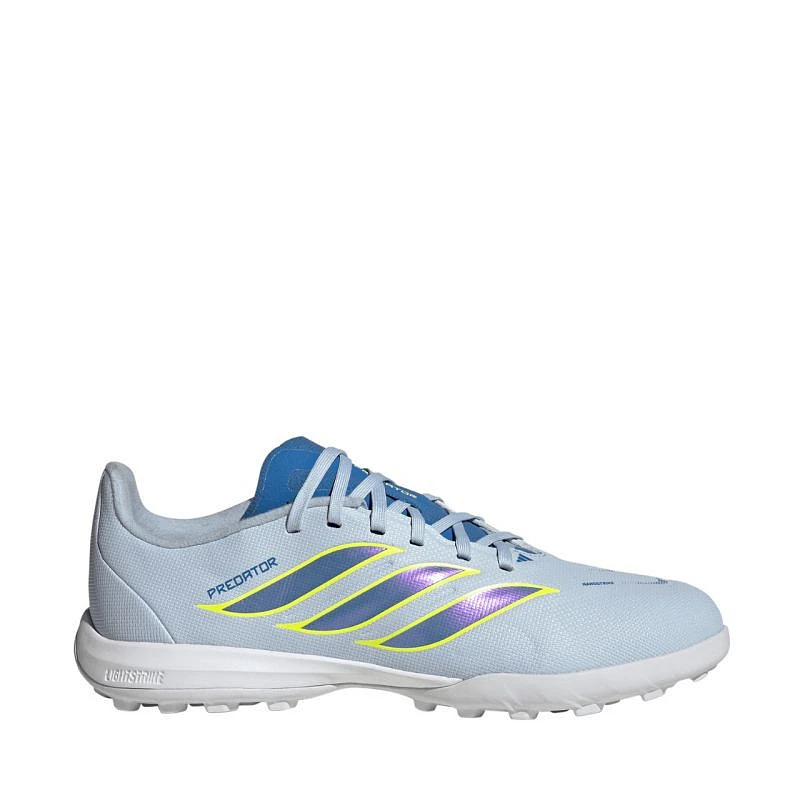 Dětské kopačky adidas Predator League TF JR7913 Polobotky adidas Predator jsou určeny pro chlapce, kteří hrají na umělých travnatých površích. Kolekce Ice Cold Precision. Syntetický svršek s technologií Hybridfeel vytváří texturovaný povrch dopadové zóny. Reliéfní prvky a vyvýšený potisk. Klasické šněrování. podrážka adidas Turf umožňuje pohyb s dostatečnou přilnavostí. Tento výrobek je vyroben z minimálně 20 % z recyklovaných materiálů.