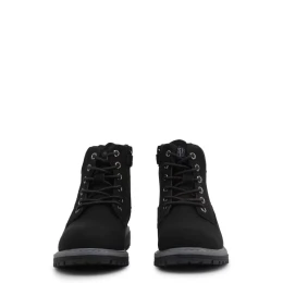 Detaily: kovová očka, kulatá špička, suchý zip, boční zip