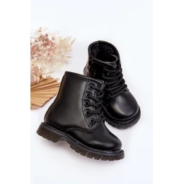 Dětské Kožené Kozačky Se Zipem Černe Omua