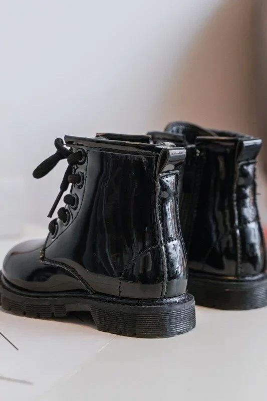 Dětské lakované kotníkové boty na zip, Black Tibbie