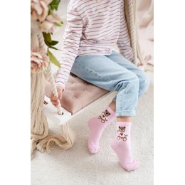 Dětské Mládežnické Ponožky Medvídek Růžové