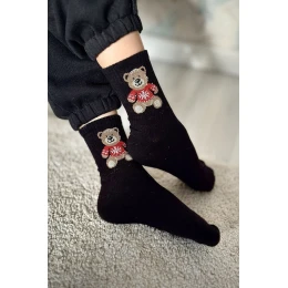 Dětské Mládežnické Ponožky Medvídek V Svetru Černé