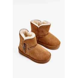 Nádherné dětské sněhule vyrobené z eko semiše. Tento model má na boku svršku ozdobný zip. Vnitřek zateplený hustou kožešinou ochrání vaše dítě před chladem. Boty byly umístěny na platformě. Tento skvělý model bude fungovat v mnoha stylech! Tyto sněhule by rozhodně neměly chybět v šatníku vašeho batolete! Při výběru velikosti se řiďte tabulkou velikostí.