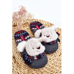 Dětské pantofle na tlusté podrážce se šedým medvídkem Dasca