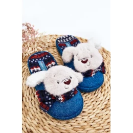 Dětské papuče na silné podrážce s medvídkem, modré, Dasca