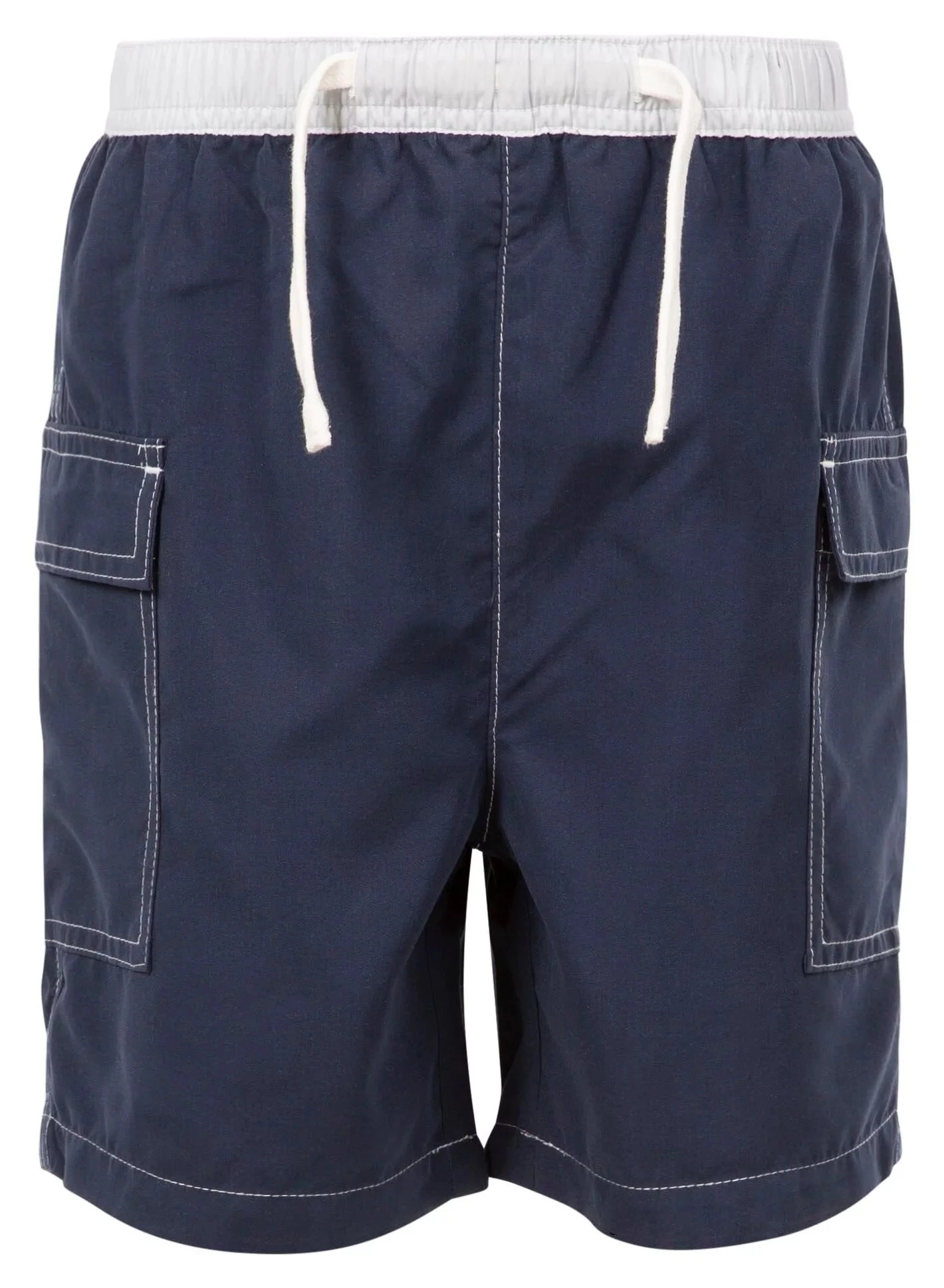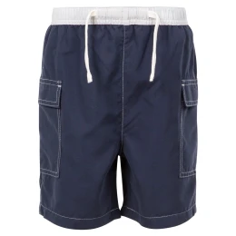 Dětské plavecké kraťasy Trespass Depths mají žebrovaný pas se stahovací šňůrkou, aby vám optimálně padly a dvě boční kapcy.