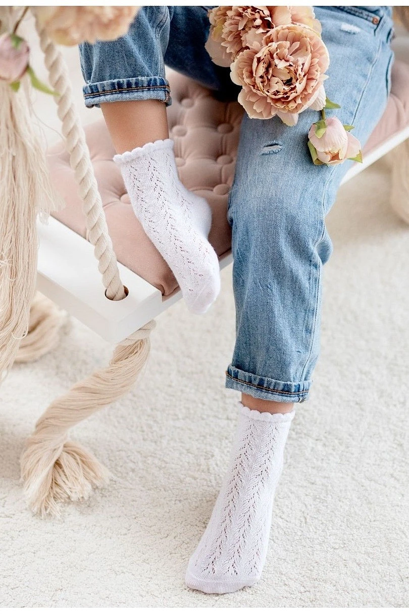 Klasické dětské prolamované ponožky z vysoce kvalitní bavlny jsou ideální volbou pro každodenní nošení. Měkký materiál příjemný na dotek poskytuje pohodlí po celý den, zatímco jemný prolamovaný vzor podporuje cirkulaci vzduchu, aby nohy vašeho dítěte zůstaly suché, svěží a bez nadměrné vlhkosti. Ponožky dokonale přiléhají k noze, neomezují v pohybu a jsou ideální na hraní, procházky i rodinné oslavy. Jsou kombinací pohodlí, prodyšnosti a klasického stylu, kterou ocení každý rodič.