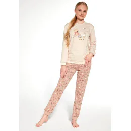 Dětské bavlněné pyžamo od značky Cornette. Pyžamo má tričko s dlouhým rukávem a na přední části obrázek. Spodní díl je dlouhý s potiskem, v pase je měkká, široká guma. Na rukávech i na nohavicích je pohodlný úplet.