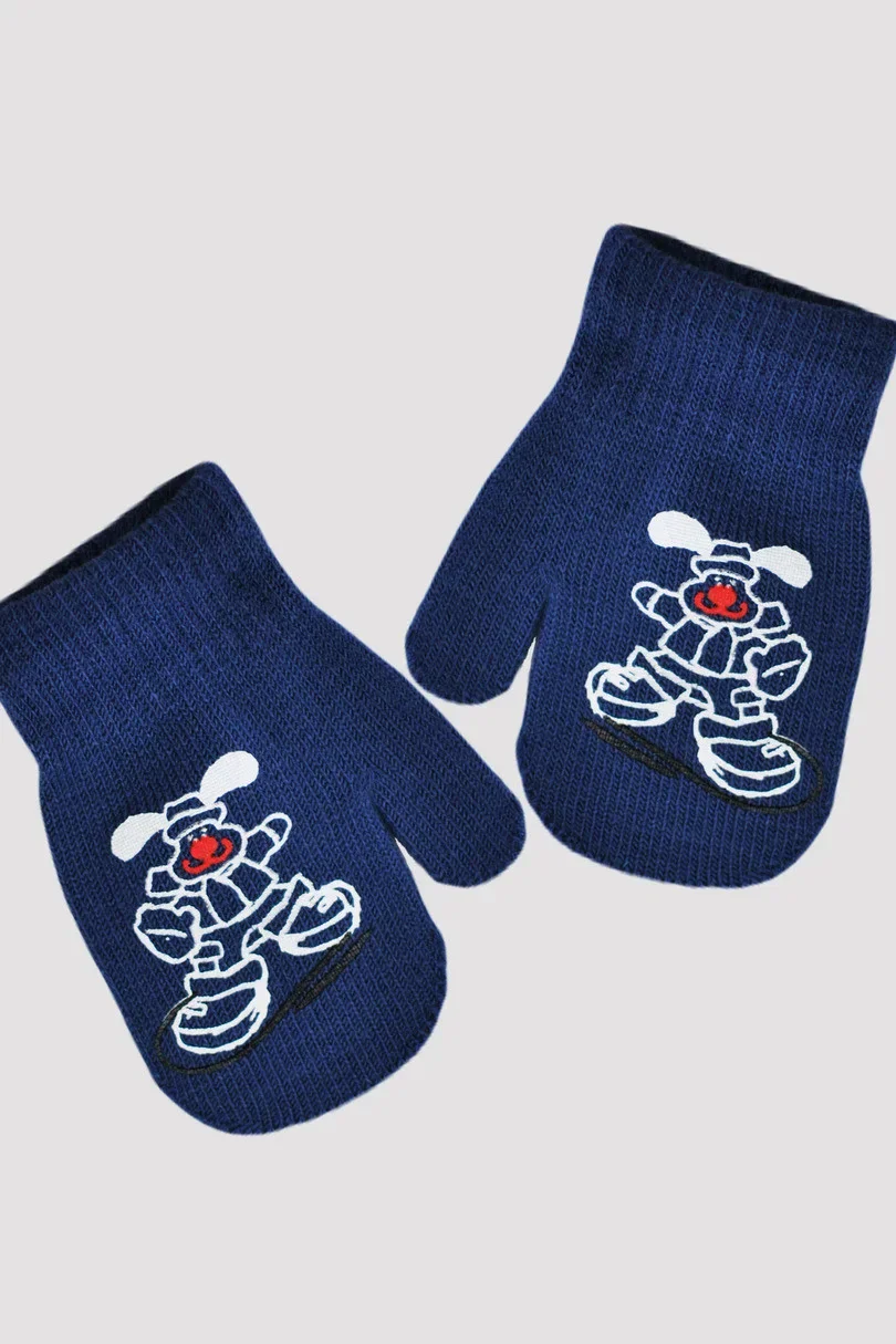 Dětské jednoprsté rukavice, dvojité, s aplikací, spojené šňůrkou.