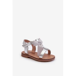Dětské sandálky S Mašlí Na suchý zip Stříbrné Joratia
