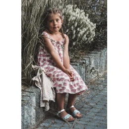 Krásné dětské sandálky se suchým zipem. Vepředu se prolínají popruhy, které dodávají další šarm. Ideální na teplé dny, tyto sandálky spojují pohodlí s moderním vzhledem a zajišťují pohodlí během každodenních procházek a her na čerstvém vzduchu. Při výběru velikosti se řiďte tabulkou velikostí.