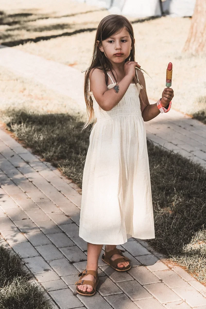 Krásné dětské sandály na korkové platformě. Měkká stélka zajišťuje pohodlí. Nastavitelné popruhy s přezkami umožňují dokonalé uchycení. Zapínají se na suchý zip, snadno se nazouvají a svlékají. Ideální pro letní dny! Při výběru velikosti se řiďte tabulkou velikostí.