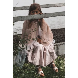 Nádherné, dětské sandály jsou vyrobeny z eko kůže. Vpředu mají propletené pruhy. Otevřená špička a pata umožní správné větrání obuvi. Zapínání na suchý zip u kotníku. Nasazené na plochém podpatku s protiskluzovou gumovou podrážkou. Při výběru velikosti se řiďte tabulkou velikostí.